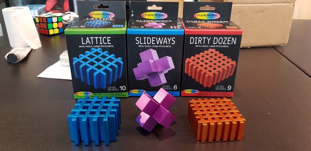 8번째 퍼즐 리뷰는 퍼즐마스터에서 구입한 3종의 퍼즐입니다. 이번 봄에 킥스타터를 통해 펀딩을 진행했는데, 소식을 빨리 접해 얼리버드로 펀딩에 들어가 배송비 포함 66달러라는 아주 싼 가격에 3종의 퍼즐을 구입했습니다. 퍼즐마스터 회사가 위치한 캐나다에서 배송되는 가격이 원래 20달러 언저리인 것을 고려하면 득템을 한 것이지요. 더군다나 색색의 알루미늄으로 인해 아주 멋들어집니다.
