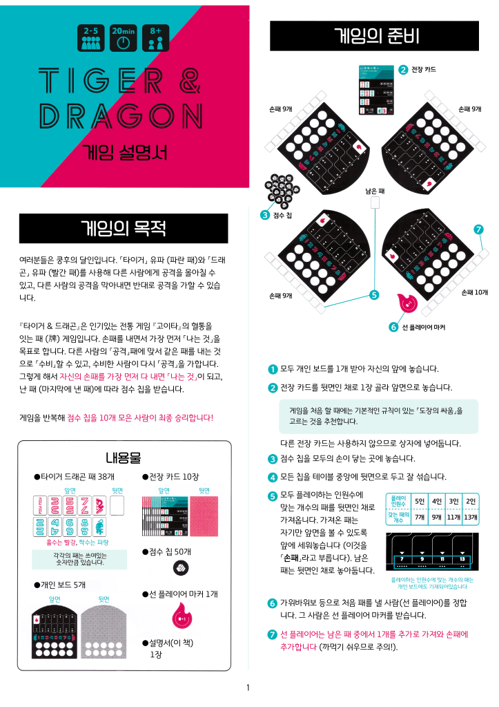 2021년 출시된 오잉크게임즈/아크라이트의 타이거 앤 드래곤(tiger & dragon) 한국어 룰북입니다.