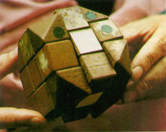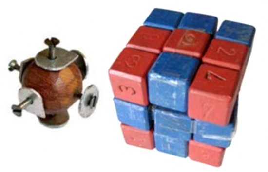 헝가리 부다페스트 공과대학의 루빅 에르뇌(Rubik Ernő)는 학생들에게 입방체에 관련된 문제를 내다가 아이디어를 떠올렸습니다. 정육면체를 쪼개고, 그것들을 회전시키되 계속 응집시키는 것을 생각했죠. 나무에 고무 밴드를 붙이는것에서 시작해서 축 구조를 고안하고, 그것을 기준으로 삼아 큐브를 발명했습니다. 역사적인 순간이었죠.